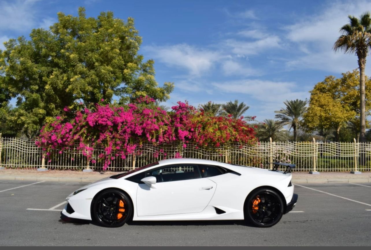 The Lamborghini Huracan Coupe LP610-4 Sports Car is listed by Lamborghini Car Rental. It’s White in color on the outside This 2-door Sports Car fits 2 passengers and 1 medium-sized bag(s).