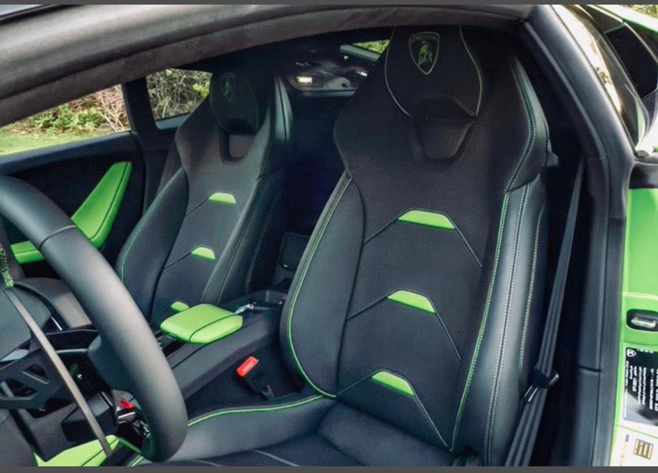 The cabin of the Huracan Evo Green is an amalgamation of luxury and cutting-edge technology. Premium Alcantara and leather upholstery, customizable interior colors, and carbon fiber trims create a lavish yet sporty atmosphere.