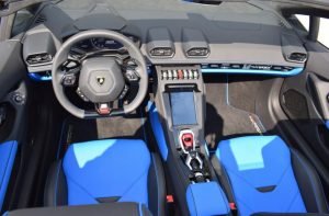 The interior of the Lamborghini Huracán Evo Spyder is a testament to Lamborghini’s commitment to luxury. The cabin is a mix of leather, Alcantara, and carbon fiber, creating a high-end feel that complements the car’s performance. The seats are ergonomically designed to provide comfort even at high speeds, while the low seating position immerses you in the car’s dynamics.